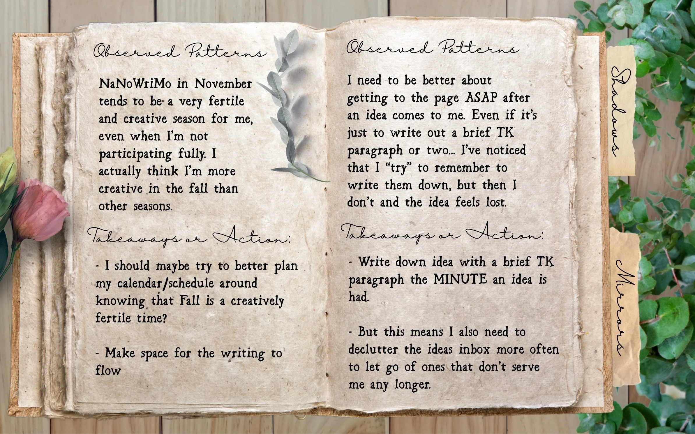 Here’s an excerpt from my word witch grimoire on some connected patterns I’ve noticed in my writing life and my journaling: