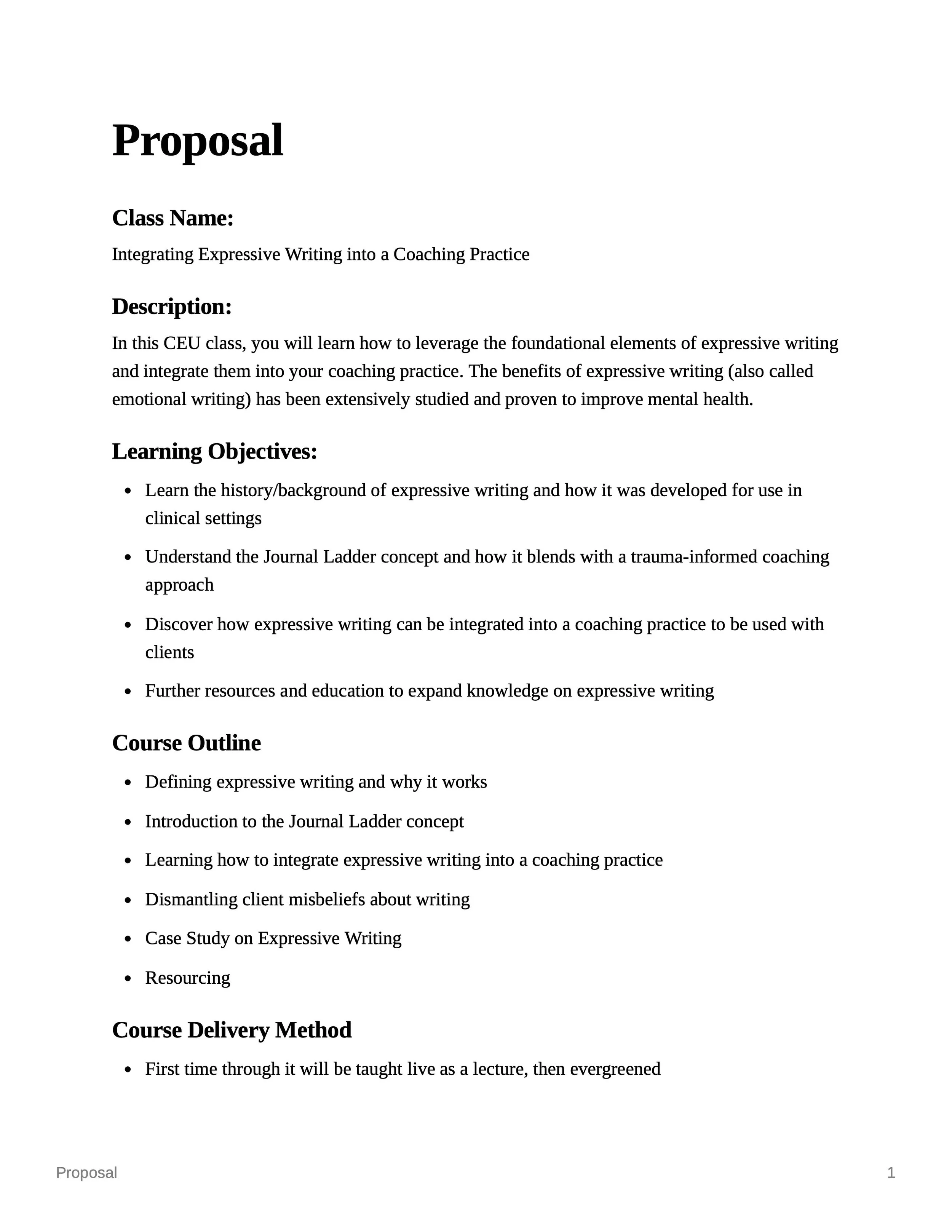 This is actually how I build ALL of my workshop curriculums, but what I love is the collaborative features like being able to send the overview link to the people in charge of deciding if the CEU was accepted as well as exporting the proposal to PDF for easy reference.